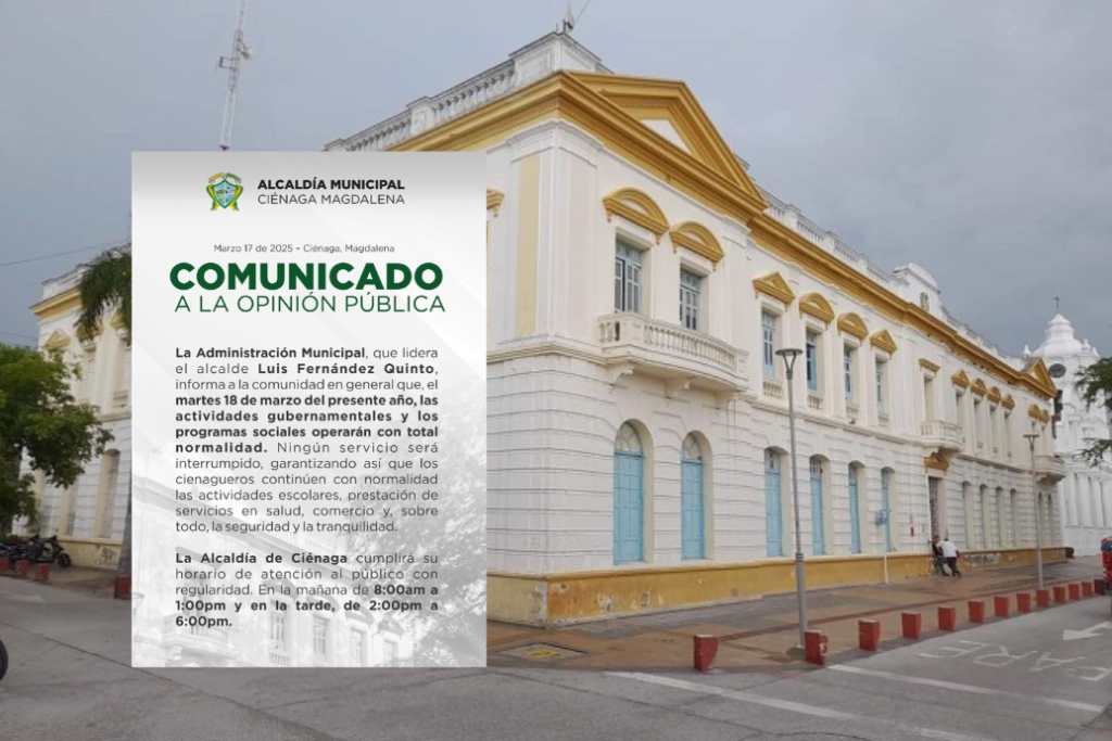 La administración municipal de Ciénaga, encabezada por el alcalde Luis Fernández Quinto, ha anunciado que, a pesar de la declaratoria del 18 de marzo como día cívico por parte del presidente Gustavo Petro, las actividades gubernamentales y los programas sociales en el municipio se desarrollarán con total normalidad. Este día cívico fue establecido a nivel …