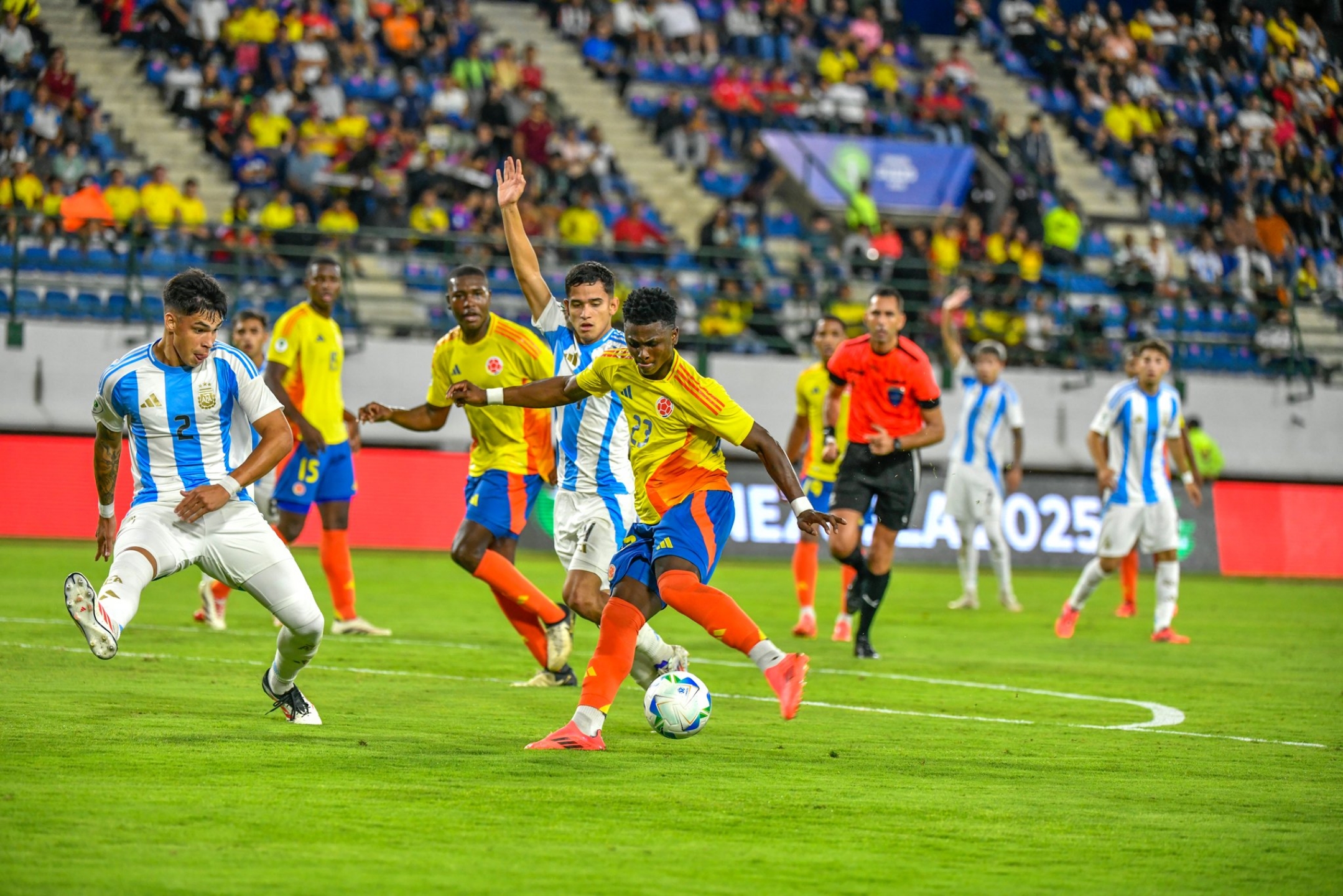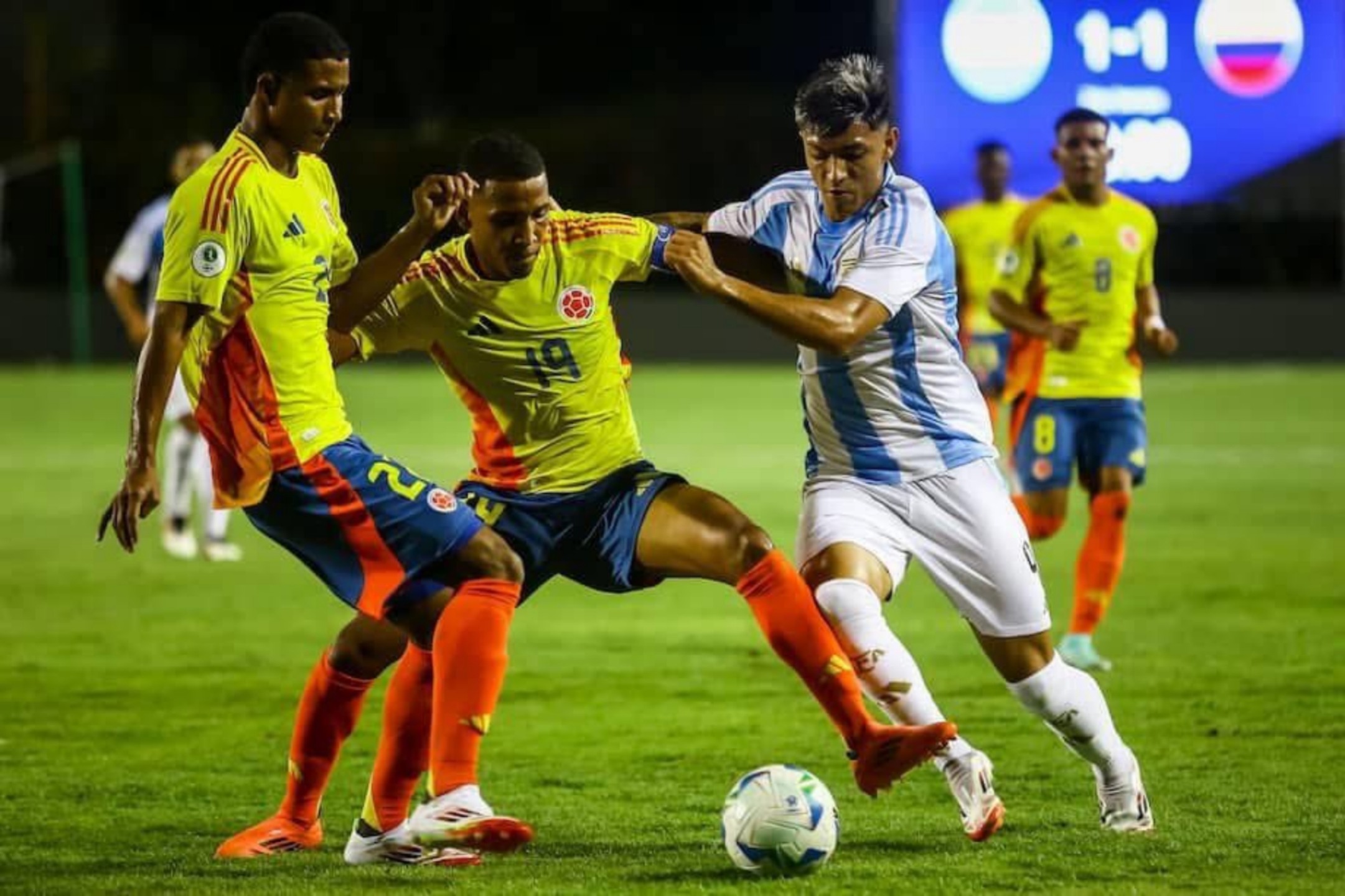 Por su parte, Argentina respondió con tres ocasiones de gol que Jordan García, el portero colombiano, pudo salvar. Primero se enfrentó a un remate de Santiago Hidalgo, luego a un mano a mano con Claudio ‘Diablito’ Echeverri, y finalmente, atajó un disparo a quemarropa de Franco Mastantuono.